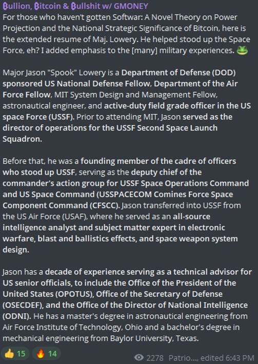 On a side note, did you know US Space Force Major Jason Lowery trolls his haters by embracing the label, “spook?” Those who could see the signal within the psyops found the various Twitter exchanges quite hilarious. In his book, Softwar, he provides an extended resume of his military experience where he includes the nickname. Below is a post I shared on February 25, 2023, that captures the data. Enjoy!